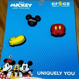 Fun Mickey Mouse charms for CROCS. Features black ears, red shorts, yellow shoe. Perfect for Disney lovers.