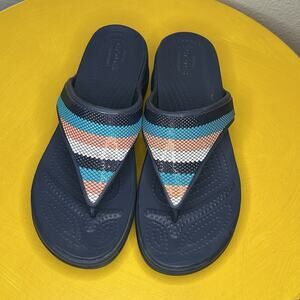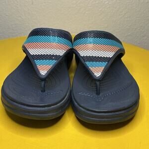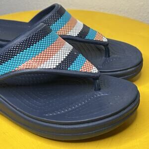 CROCS Monterey Bead Stripe Thong Comfort Sandals Flip Flops Women’s Size 9 Blue