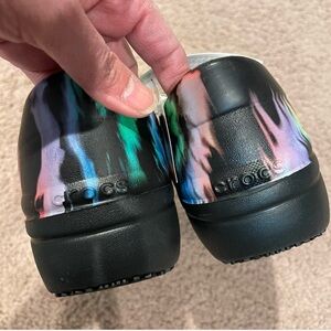 Authentic CROCS multi-coloured Tie--dye clogs. Neria Pro II Slip Resistant Graphic clogs #crocs #clogs. Never been used, size 8. Dual crocs comfort. Still with the tag on. Original price is $65, selling low,unable to wear non-flat shoes anymore.