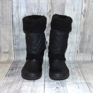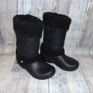 PRE-OWNED Crocs Nadia black boots, womens size 9.