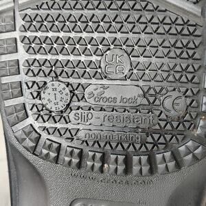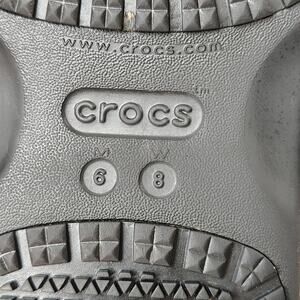CROCS On The Clock Work Shoes Clogs Slip On Black Slip Resistant. Men's size 6 / Women's size 8. Preowned excellent condition with very little if any wear. Slip-resistant sole has new looking tread. CROCS logo on insole is faded. From a non-smoking home. No box.