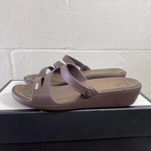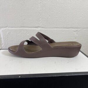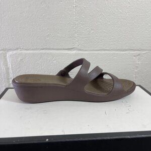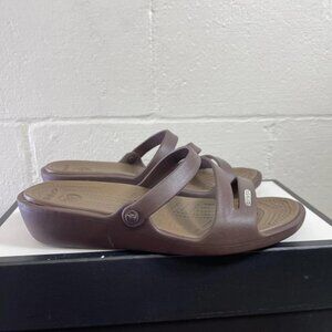 CROCS Patricia Brown Sandals Mini Wedge Slip On Strappy Women's Size 10 US