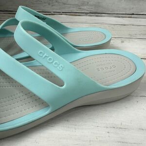 CROCS Patricia Women 11 Blue Gray Wedge Slide Comfort Slide Sandals NWT NEW