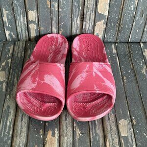 CROCS Pink Marbled Pattern Slides Juniors Size 3