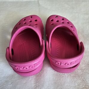Comfortable and stylish pink crocs for toddlers. Perfect for everyday wear. Good used condition.