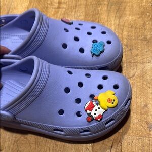 Experience the comfort of CROCS with these purple slippers, featuring a classic design with ventilation holes for breathability and a versatile heel strap for a secure fit. The textured footbed ensures all-day comfort, making them perfect for casual wear.