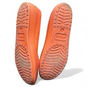 Bright orange mules by CROCS. Perfect for casual wear. Enjoy comfort and style.
