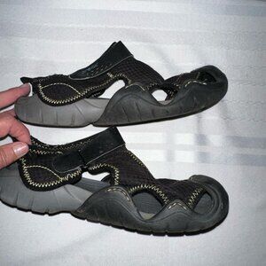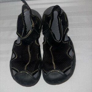 CROCS SWIFTWATER JUNIORS 3J MESH DECK SANDALS BLACK CASUAL men’s 7 women’s 9 GUC