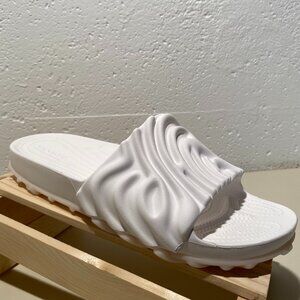 Stylish white slide sandals. Comfortable and lightweight. Perfect for casual wear. Purchased for my son he tried them on unfortunately they did not work out. That is the only reason I’m relisting them. They’re in perfect new condition.
