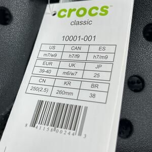 CROCS Sandals M7 W9 Classic Clog Lightweight Slip On Croslite Black NEW