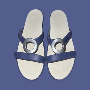 CROCS Sanrah Beveled Circle Sandal Blue Wedge Slip On Comfort Lightweight SZ. 10