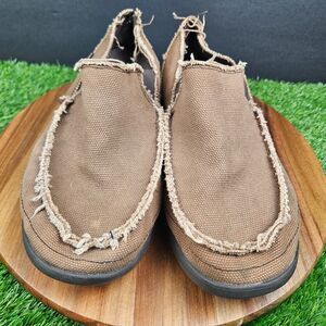 CROCS Santa Cruz Shoes Mens 11 Brown Slip On Canvas Loafer Slippers Casual