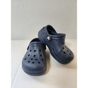 Get your little one ready for fun with these adorable Crocs! These toddler-sized 7 Crocs are in very condition and come in a classic navy blue color. The comfortable, lined interior will keep your child's feet cozy and warm, perfect for cooler days.