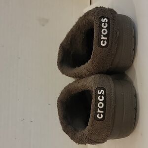 CROCS unisex brown serpa lined classic mules/clogs (sz M-7 or W-9). Please see all pictures.