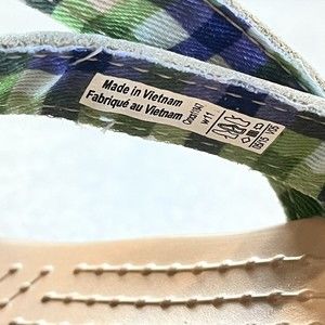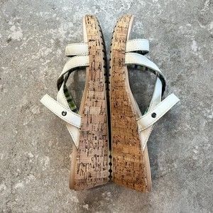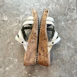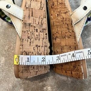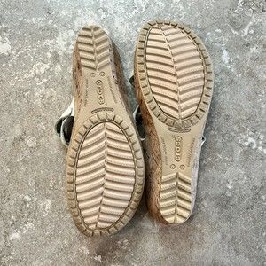 CROCS W11 A Leigh Crisscross Beige Cream Wedge Sandals Tan Leather Heels A-Leigh Cork Plaid Blue Green Inside Comes from a smoke-free and pet-free home. See pictures and enlarge them for details, they are part of the description. Measurements listed are approximate.