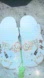 Chic white CROCS featuring gold and pink decorative charms. Ideal for a trendy casual style.