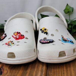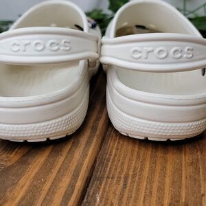 CROCS. White Clogs with Truck Buttons. Size 5 Men's Or Women's 7.