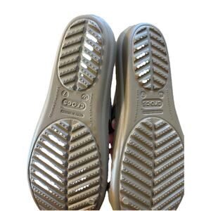 CROCS Women 7 Sanrah Cream Taupe Matte Silver Circle Ring Slides Sandals comfort