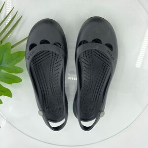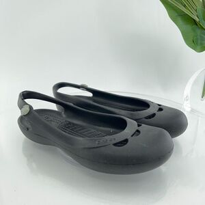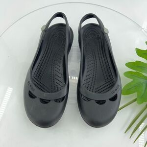 CROCS Women's Jayna Slingback Flats Size 8 Black Rubber Slip On Beach Shoe Comfy