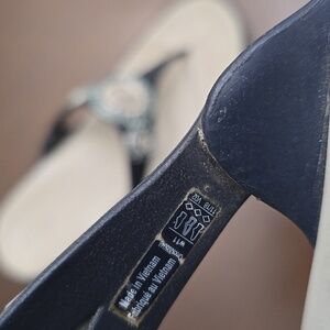 CROCS Women's Navy Blue Sandals Flip Flops Beaded Turqoise 11