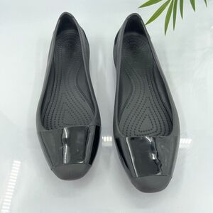 CROCS Women's Sienna Ballet Flats Size 7 Black Rubber Slip On Shoe Square Toe