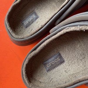 Great CROCS marked M-10 W-12 unisex fuzzy footbed. no scuffs or stains. Color is brown