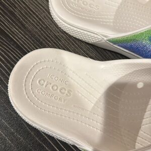 Step into summer with these eye-catching CROCS sandals, featuring a striking combination of colorful hues.Designed for comfort, the textured sole and molded footbed ensure a perfect fit for all-day wear.