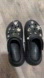 Chic black CROCS slippers for Women. Features decorative charms. Ideal for casual wear.