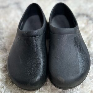 Stylish black clogs with textured design. Ideal for everyday comfort.