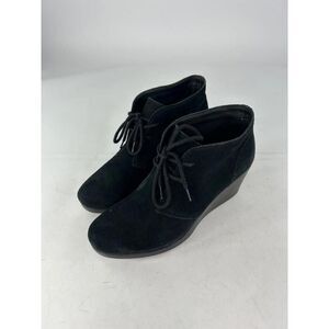 CROCS Leigh Black Suede Wedge Shootie US 8.5 Ladies Ankle Boot Booties Shoes