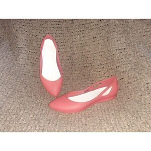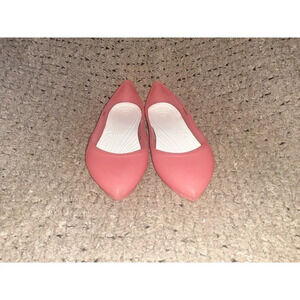 CROCS-Rio-Salmon Pink Flats-Pointed Toe-Side Cut-Outs-Sz 8-Excellent