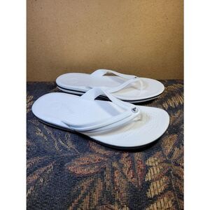 CROCS Unisex Crocband White and Black Flip Flop Sandals- Size M7/W9