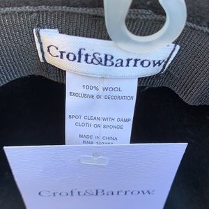 CROFT & BARROW 100% Wool black hat with fabric band and faux feather accβ¦