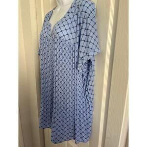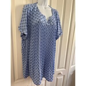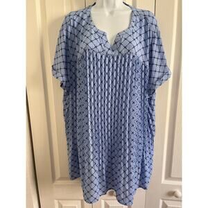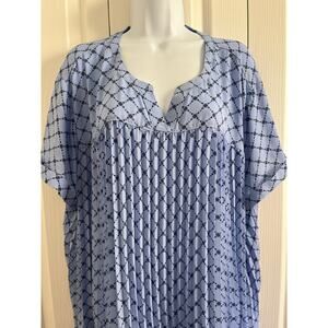 CROFT & BARROW BLUE & WHITE FLORAL Round Neck SHORT SLEEVE CRINKLE TOP SZ 2X 18