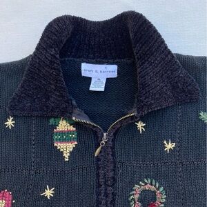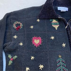 CROFT & BARROW | Christmas Sweater Zip Knit Jacket with Wreath