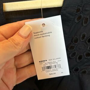 CROFT & BARROW NWT Black Eyelet Sleeve Lightweight Button Up Blouse XXL