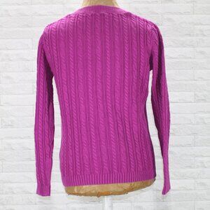CROFT & BARROW Sweater Cable Knit Classic Cotton Crew Neck Winter Fuchsia Pink