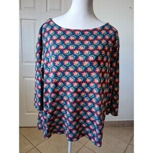 CROFT & BARROW Women Blouse Top Multicolor Floral XL 3/4 Sleeve 100% Cotton