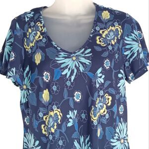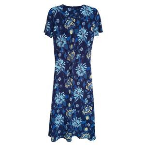 CROFT & BARROW Women’s Blue Floral A-Line Midi Dress Size 14 Casual Lightweight