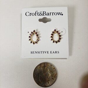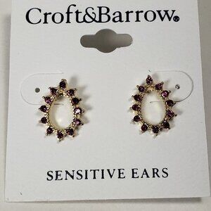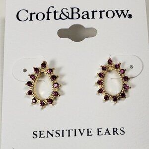 Embrace elegance with these captivating Croft & Barrow Women's Polished Gold-tone Hoop Pink Crystals Stud Earrings. Crafted in radiant gold-tone metal, these studs feature dazzling pink crystals adorning the hoops, adding a touch of refined glamour to your ensemble. Perfect for both casual and formal occasions, these earrings effortlessly elevate your style with their polished charm. New with tag