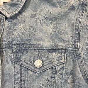 CROFT & BARROW Womens XL Light Blue Denim Jean Jacket Pockets Floral Unlined