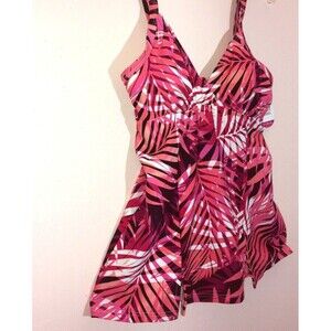 CROFT & BARROW Tummy Slimmer Tankini Top - Pink Leaf Print - Soft Cup Bra Inside; Adjustable Shoulder Straps. New & Excellent. Size 6 Ladies (Small).