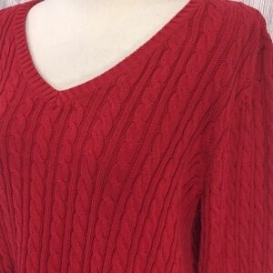 CROFT & Barrow Red V-Neck Ribbed Sweater Large