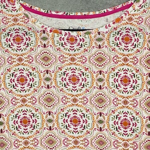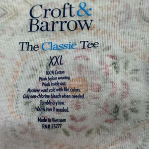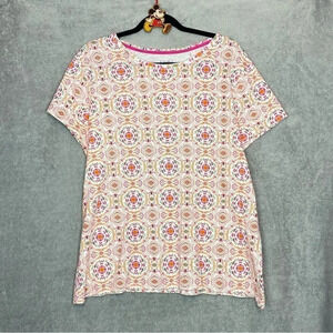 CROFT & Barrow XXL Top Shirt Pink Orange Floral Short Sleeve Round Neck Cotton