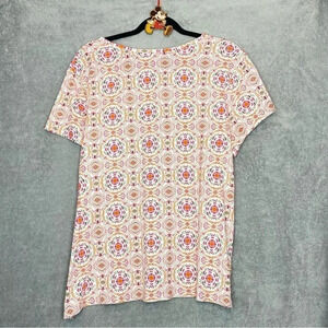 Croft & Barrow XXL Top Shirt Pink Orange Floral Short Sleeve Round Neck Cotton