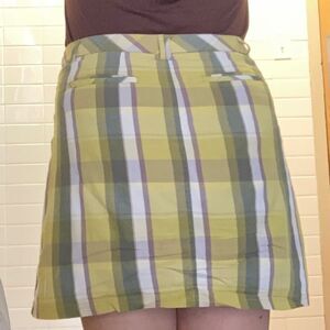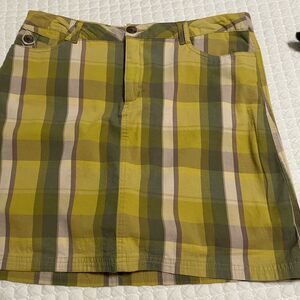 CROFT and BARROW Plaid Academia Yellow Brown White Skort Skirt Womens 14 Stretch
