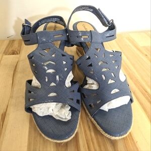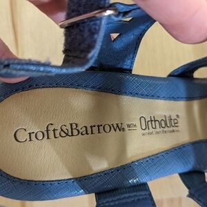 CROFT and Barrow Ortholite Orthopedic Wedge Sandals Denim Blue Cork Heel 10