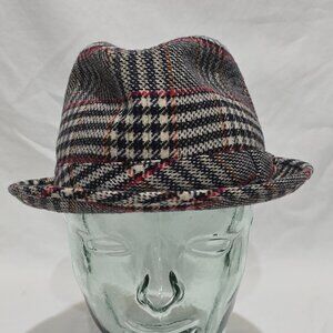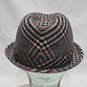 CROMBIE Aberdeen Scotland Cashmere & Wool Fedora Black Gray White Red Plaid S/7