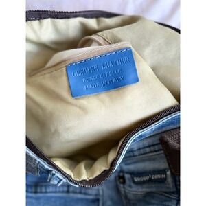 Denim dreams reimagined! A unique tote bag expertly crafted from upcycled denim jeans offers a stylish and eco-conscious statement. The classic jean details, including pockets and waistband, add a touch of playful personality. The interior reveals a zippered pocket lined with genuine leather Made in Italy, showcasing both quality and functionality. This one-of-a-kind piece is perfect for adding an edgy, sustainable flair to your everyday style. Ideal for casual outings, weekend adventures, or simply making a statement at the farmer's market.