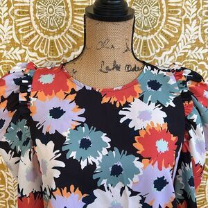 CROSBY By Mollie Burch Lurie Floral Puff Sleeve Crepe De Chine Blouse size XS